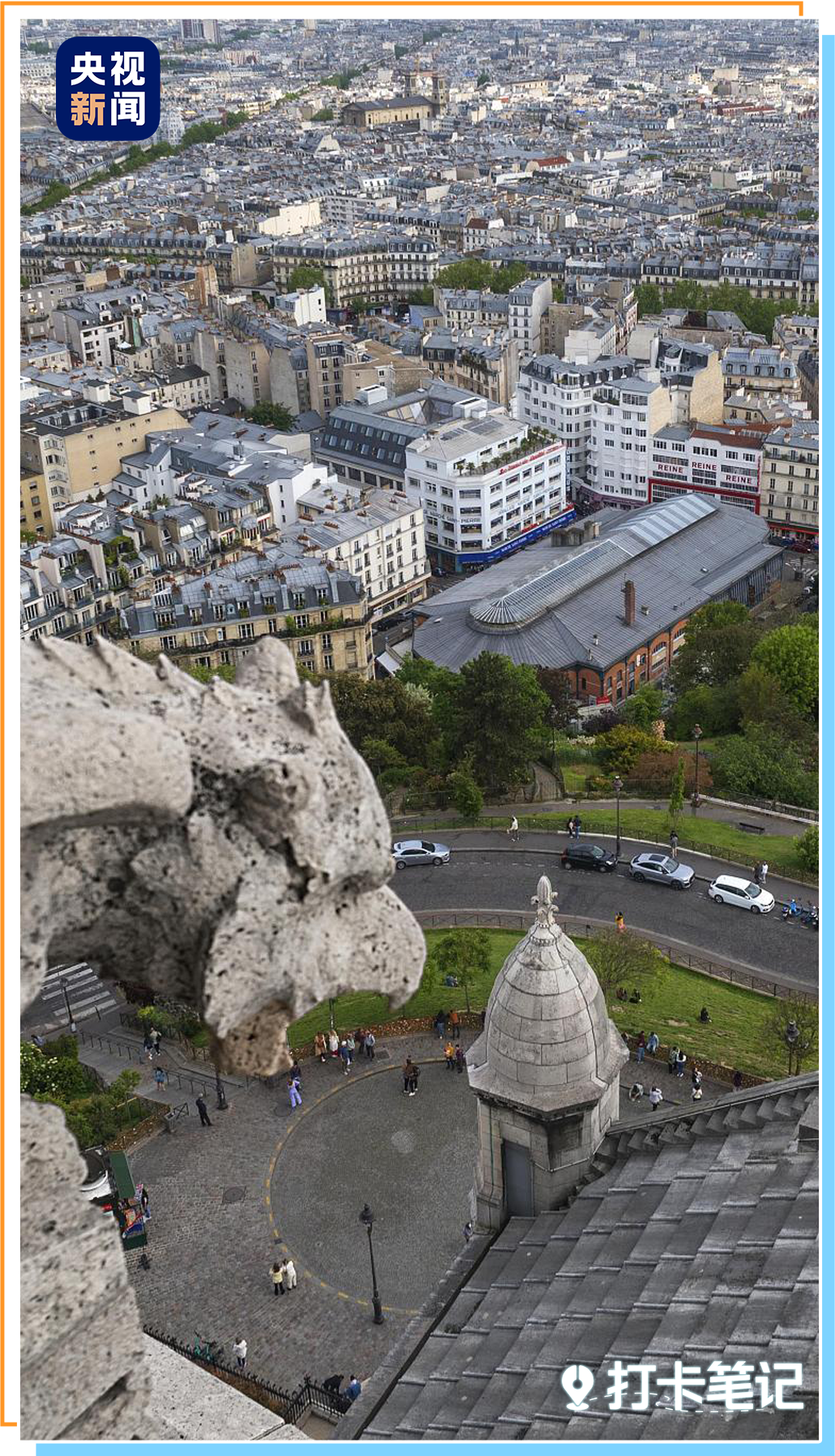 △从圣心大教堂塔顶俯瞰巴黎