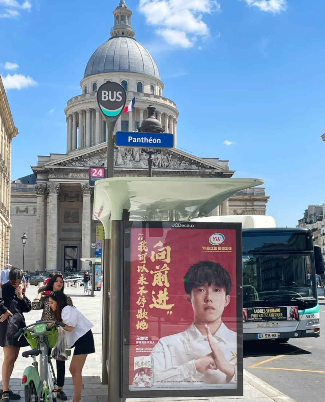 △奥运会前夕,中国品牌广告牌亮相巴黎先贤祠前。