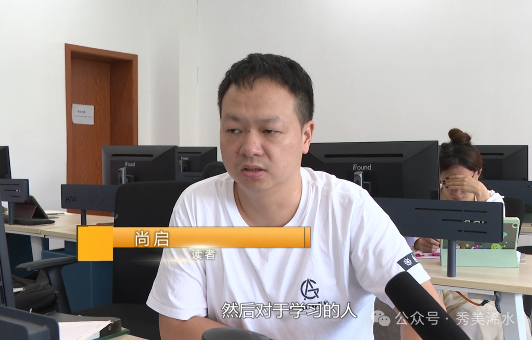 读者 尚启:这边学习环境也蛮好的,然后对于学习的人既有外面大空间的自习室,也有电子浏览室,比较安静,然后里面配备设施比较齐全,饮水、厕所各个方面都比较好。