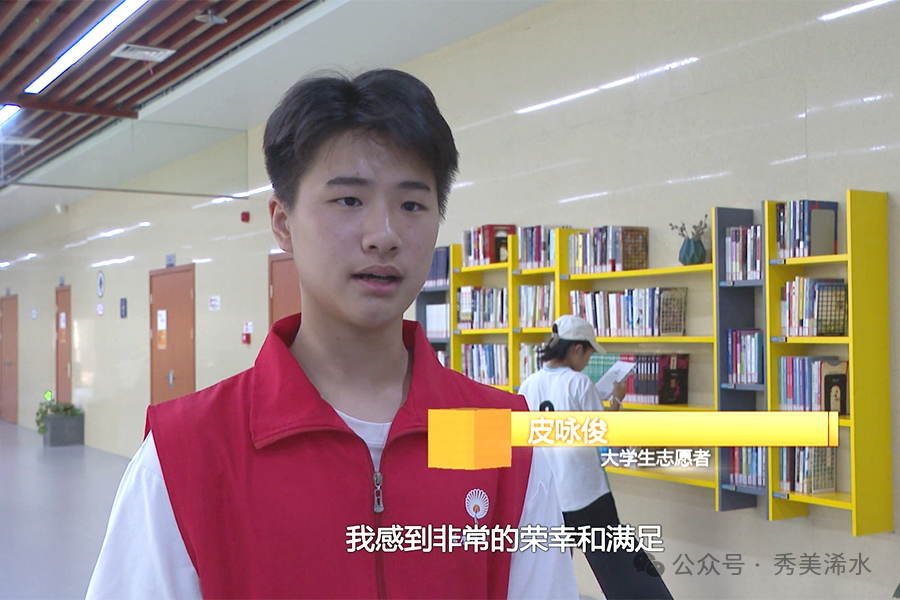 大学生志愿者 皮咏俊:作为一名图书馆的志愿者,我感到非常荣幸和满足,图书馆是知识的宝库,能够在这里为读者服务,为营造良好的阅读环境贡献一份力量,让我收获了很多的快乐和成长。