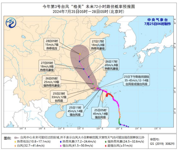 第 3 号台风“格美”未来 72 小时路径概率预报图