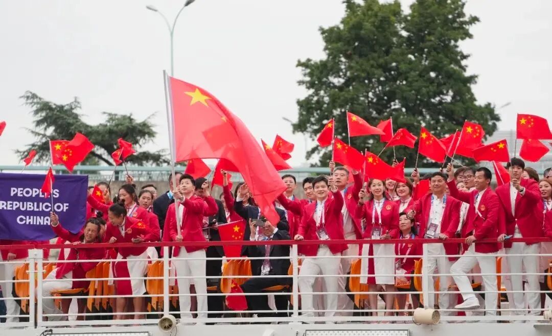 担任旗手中国运动员身披中国红