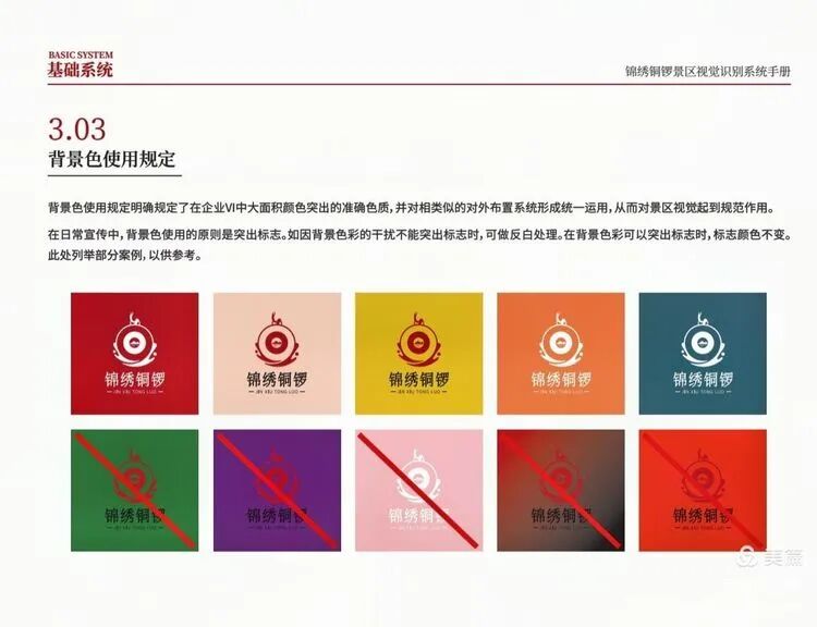 该形象标识设计采用中国红作为LOGO主色调,象征着中国第一将军县--红安,厚重的红色文化,也寓意着锦绣铜锣景区将以似火的热情喜迎八方宾客。