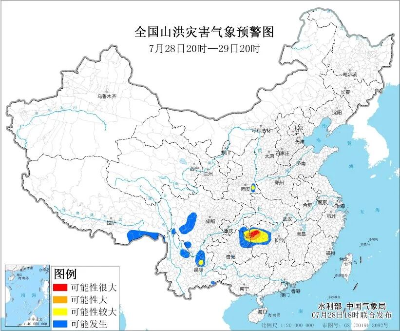水利部和中国气象局28日18时联合发布红色山洪灾害气象预警:预计,28日20时至29日20时,湖南西北部、重庆东南部、贵州东北部等地部分地区发生山洪灾害可能性大(橙色预警),其中,湖南西北部部分地区发生山洪灾害可能性很大(红色预警)。