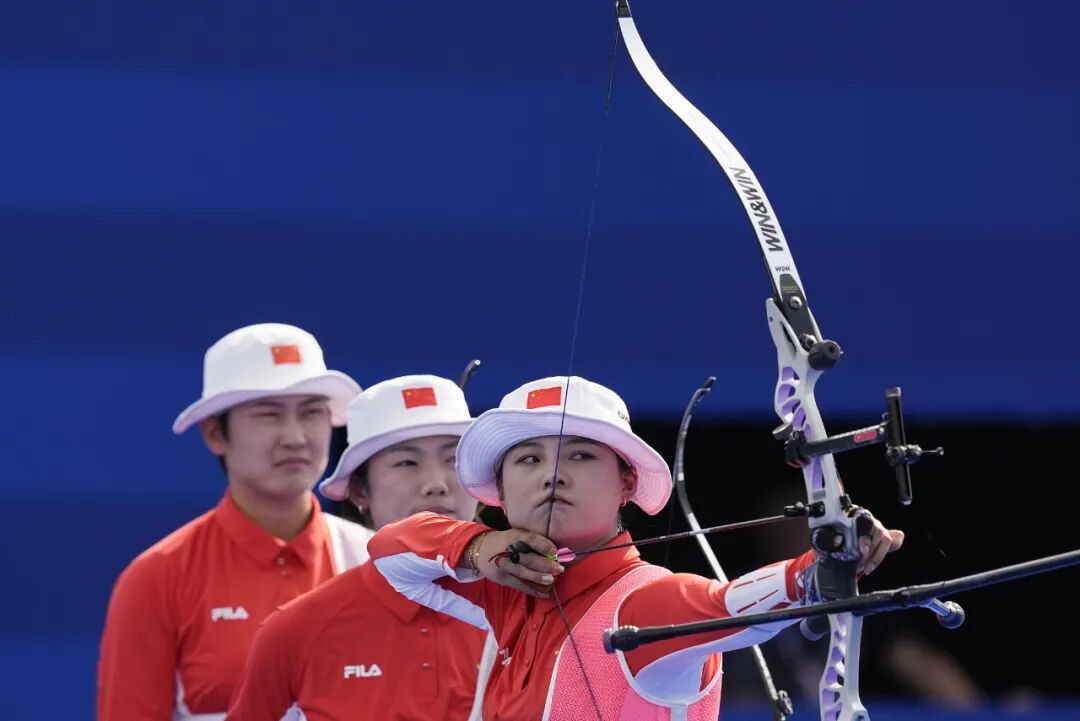 射箭女子团体金牌赛中,由李佳蔓、杨晓蕾、安琦轩组成的中国队获得银牌。