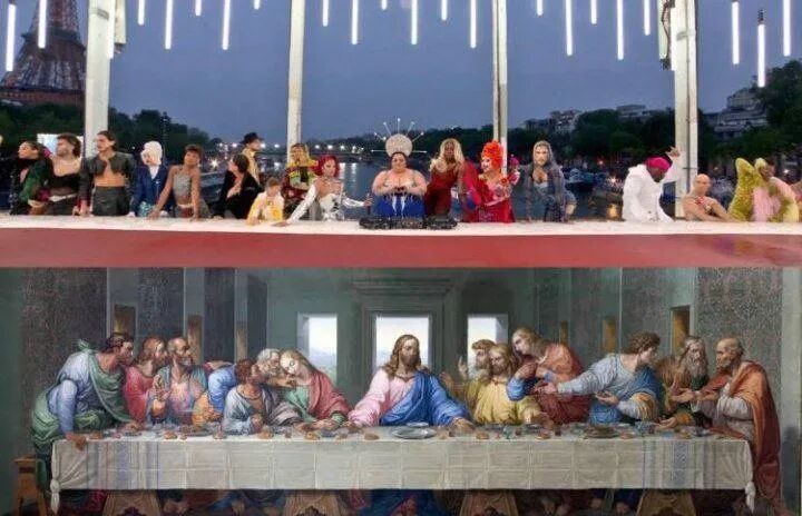 在本届奥运开幕式的其中一个节目里,多名性少数演员在桌前分别摆出不同造型,画风被认为和世界名画《最后的晚餐》高度相似。