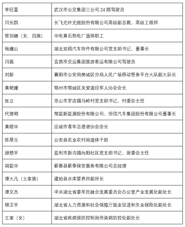 湖北受表彰名单