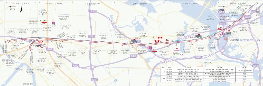 合肥至武汉段是沿江高铁7个项目中的一个,位于安徽、湖北境内,设计时速350公里,新建正线全长330.1千米,建设工期4.5年,估算总投资792.5亿元。