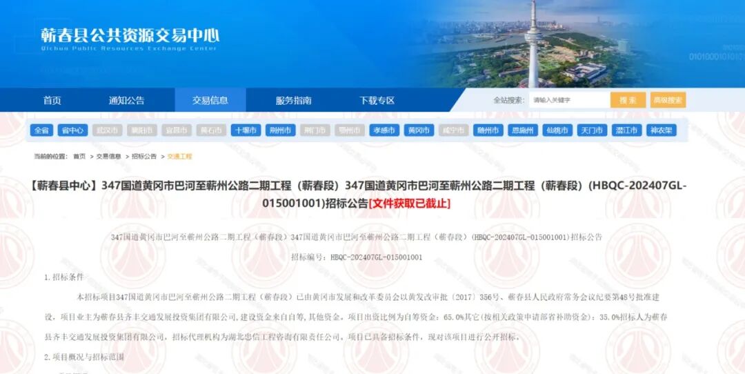 据了解,G347一级公路项目黄冈段全长约210公里,东起黄梅县刘佐乡,经黄梅县、武穴市、蕲春县、浠水县、黄州区、团风县,西接武汉新洲区。