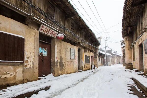 是一条长约500米,宽约四五米的弧形街道,这里街面全部是淡黄色的石板,两旁为三进或五进天井合院式建筑,店宅街屋,亦住亦商。街道石板上,留下了深深的却十分光滑的辙印。青石小路,古老墙壁,见证着历史沧桑、饱含着古韵气息。