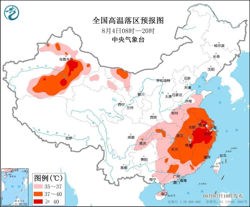 中央气象台3日18时继续发布高温橙色预警,预计4日白天,内蒙古西北部、新疆沿天山地区和南疆盆地、甘肃西部、山东南部、河南中东部和南部、安徽、江苏、上海、湖北、湖南、江西、浙江、福建、广东中北部、广西东部、海南中北部、四川盆地东部、重庆大部、贵州北部等地有35~36℃高温天气。