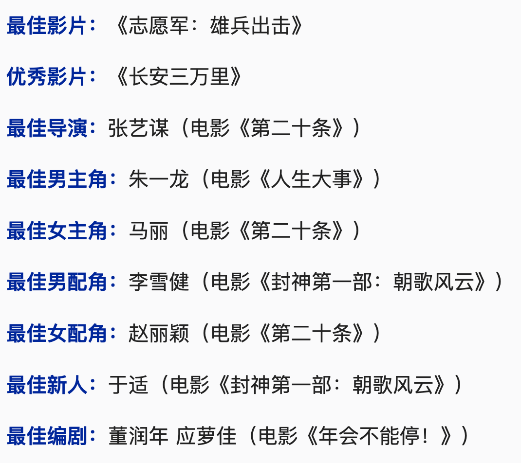 4日,第37届大众电影百花奖揭晓最佳影片、最佳导演、最佳男主角、最佳女主角等九项大奖。