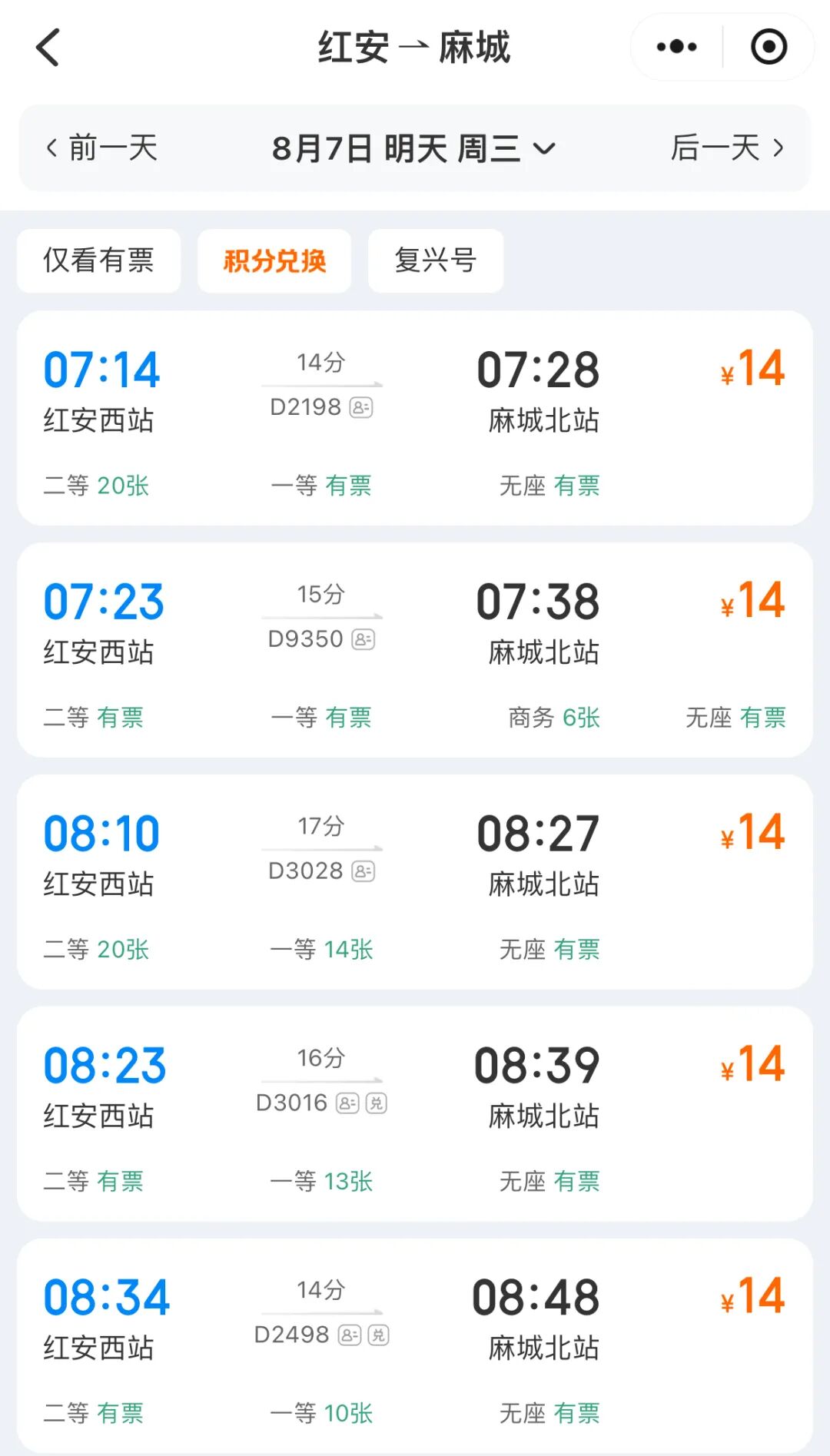 从红安西站到麻城北站仅需14分钟