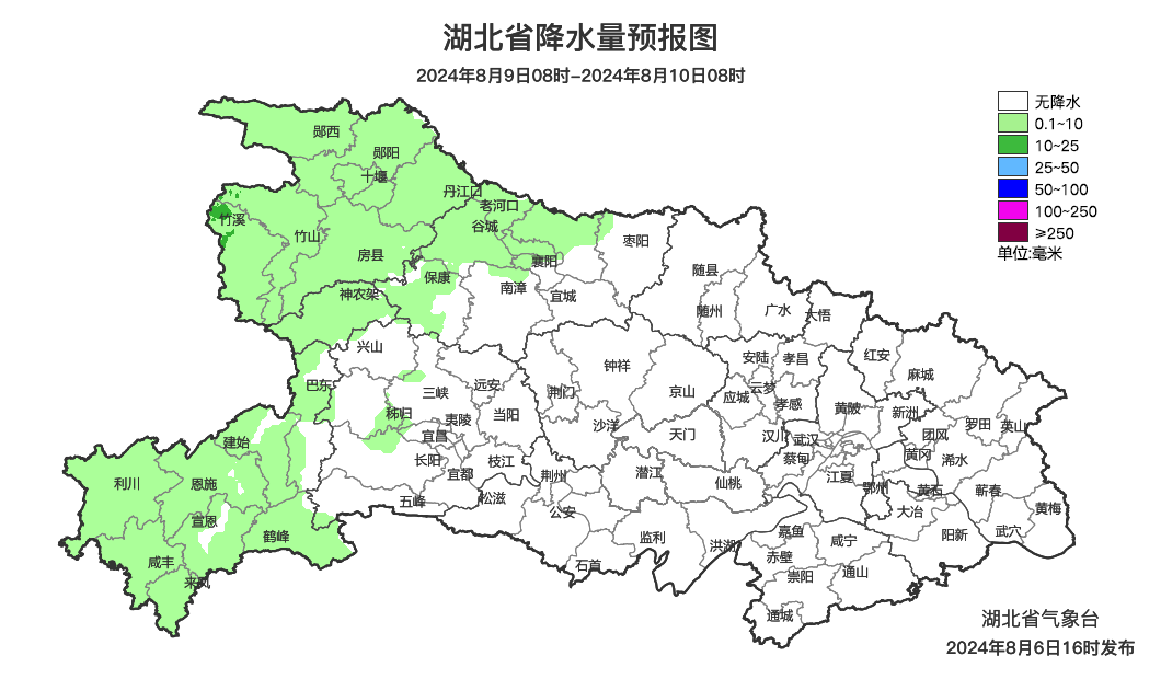 9日08时-10日08时,鄂西北、鄂西南多云转阵雨或雷阵雨;其他地区晴天到多云。最高气温36~39℃、局地40℃以上,最低气温25~30℃,偏南风3到4级、阵风5到6级。