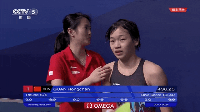 赛后的采访,全红婵说比赛过程有一点紧张,但后面及时做了调整,还是专注于自己。