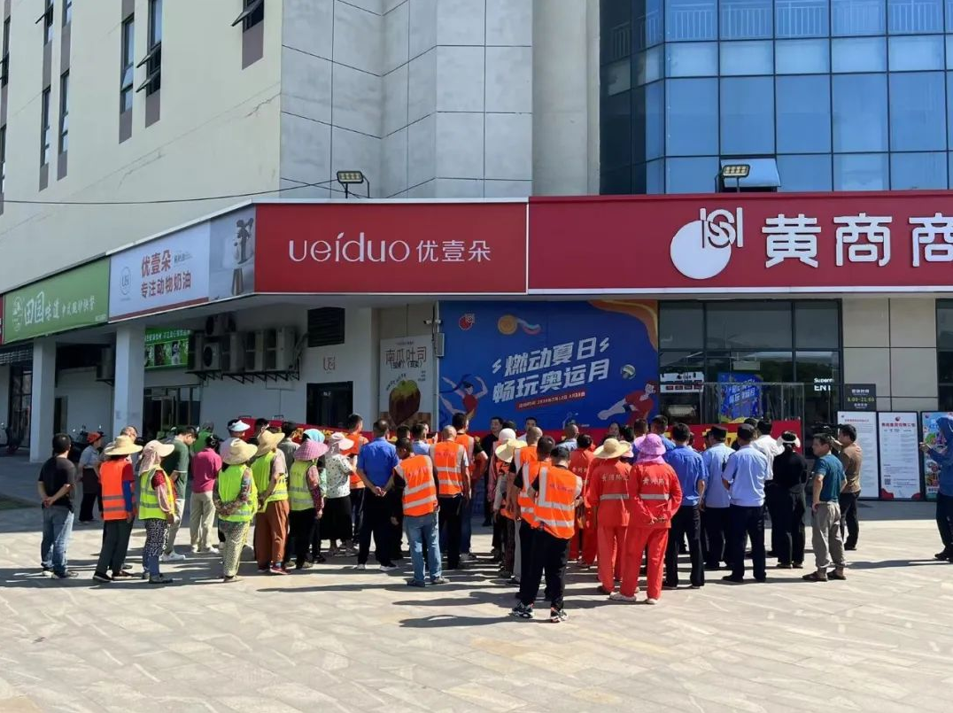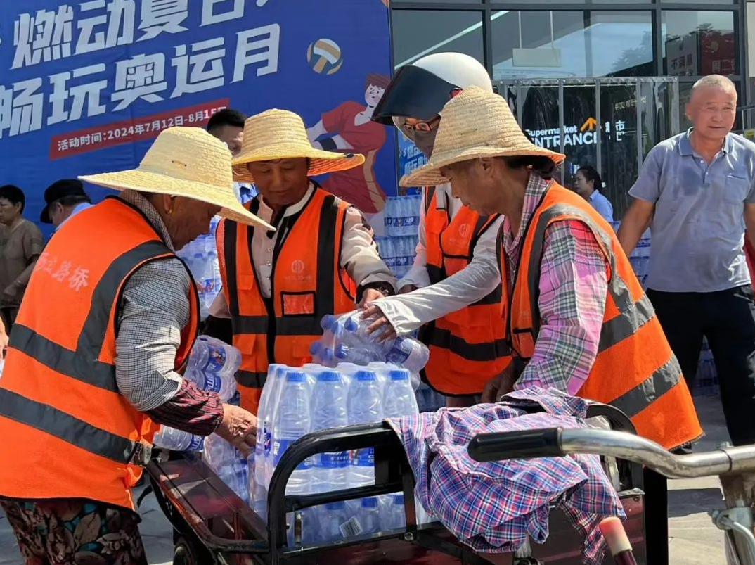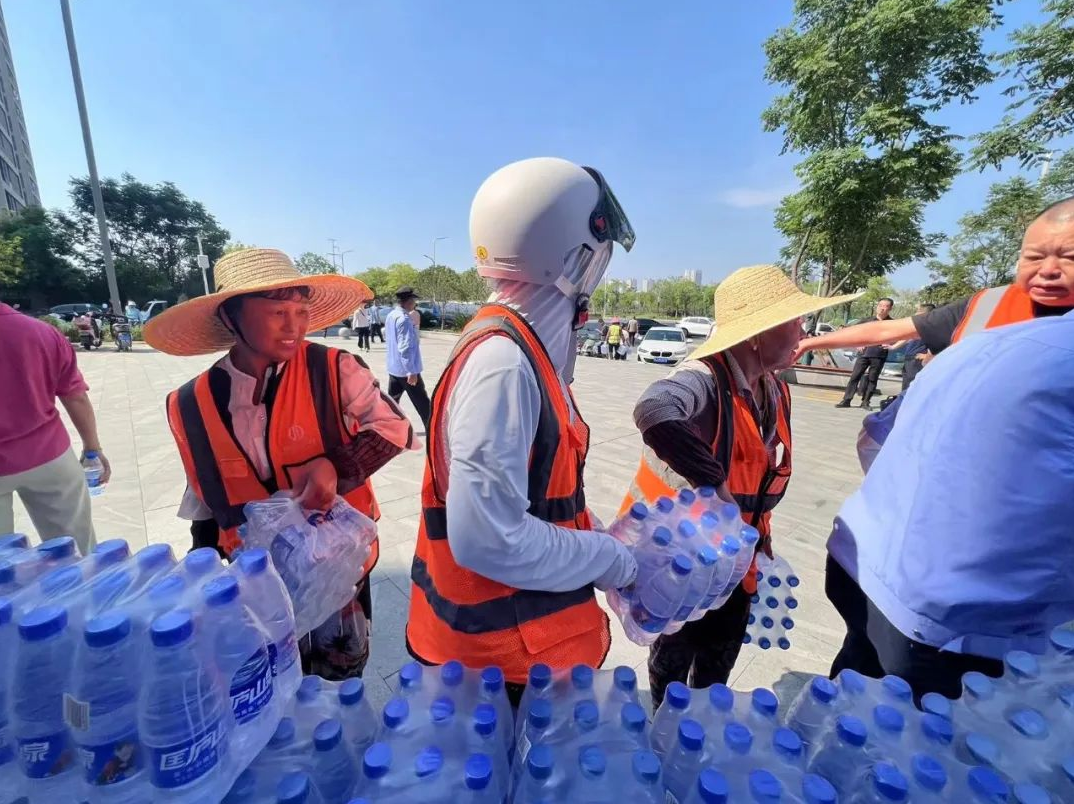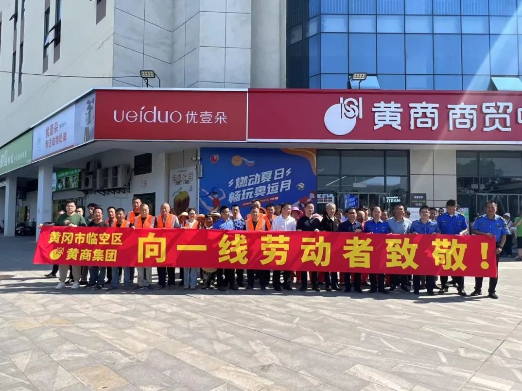 8月8号,在黄商集团临空经济区购物中心广场,市临空区联合黄商集团举办的“夏季送清凉”活动,为环卫工人、城管队员、绿化养护工人、公园管理员、市政设施维护员、路灯运维员等300余名城市管理一线劳动者送去防暑降温物资。