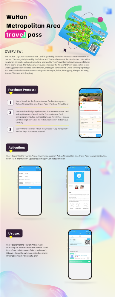 为便利境外游客来湖北旅游,让他们能够深入领略武汉都市圈的美丽风光和深厚文化底蕴,武汉都市圈9个兄弟城市文旅部门联合发行“武汉都市圈旅游年卡”海外版。海外用户可以通过微信小程序搜索旅游年卡小程序“Wuhan metropolitan area travel pass”购买年卡,畅游武汉、黄石、鄂州等武汉都市圈内9城多家优质景点、场馆、游玩项目。