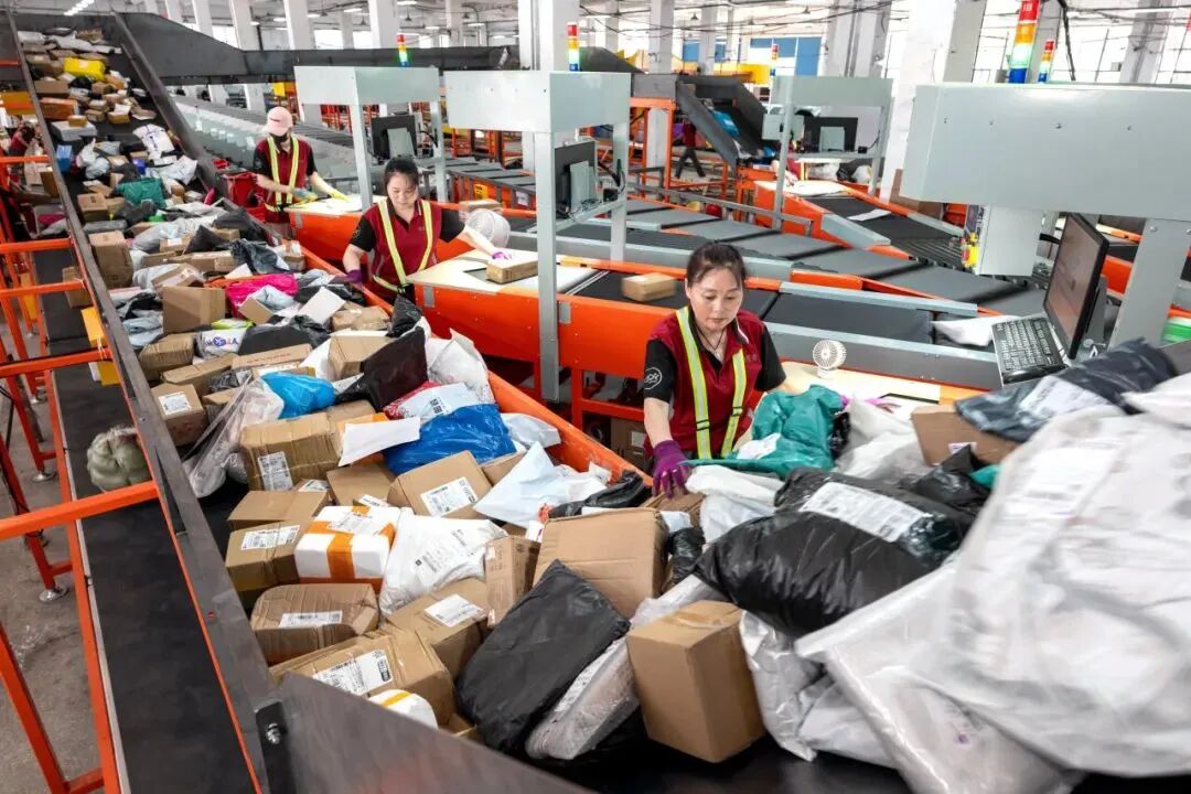 配图为工作人员在浙江湖州的一家快递企业忙着分拣、扫描出库等工作。谭云俸摄(新华社发)