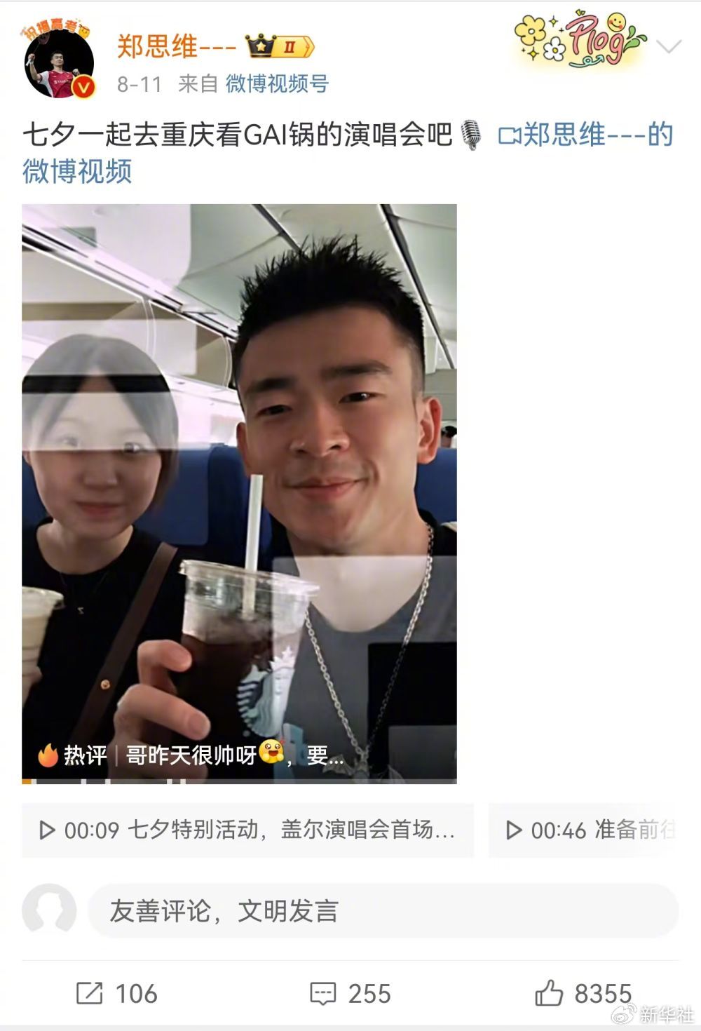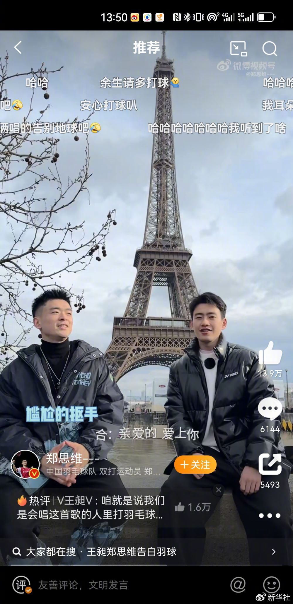郑思维、王昶自制《告白羽毛球》MV