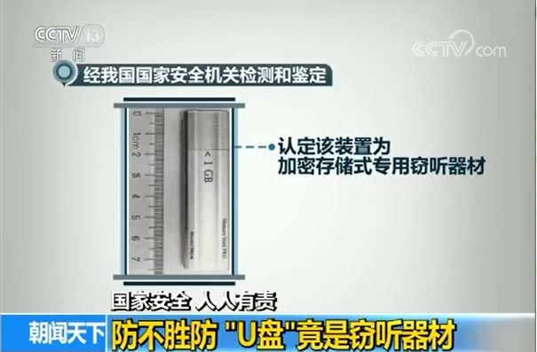 该设备被送回国内后,经国家安全机关检测鉴定,认定该装置为境外间谍情报机关使用的专用间谍器材,外观伪装为普通U盘,内置两个微型麦克风,由内设的3.7V锂电池供电,用隐藏式微型按钮实现工作状态控制,具有数字加密录音功能。