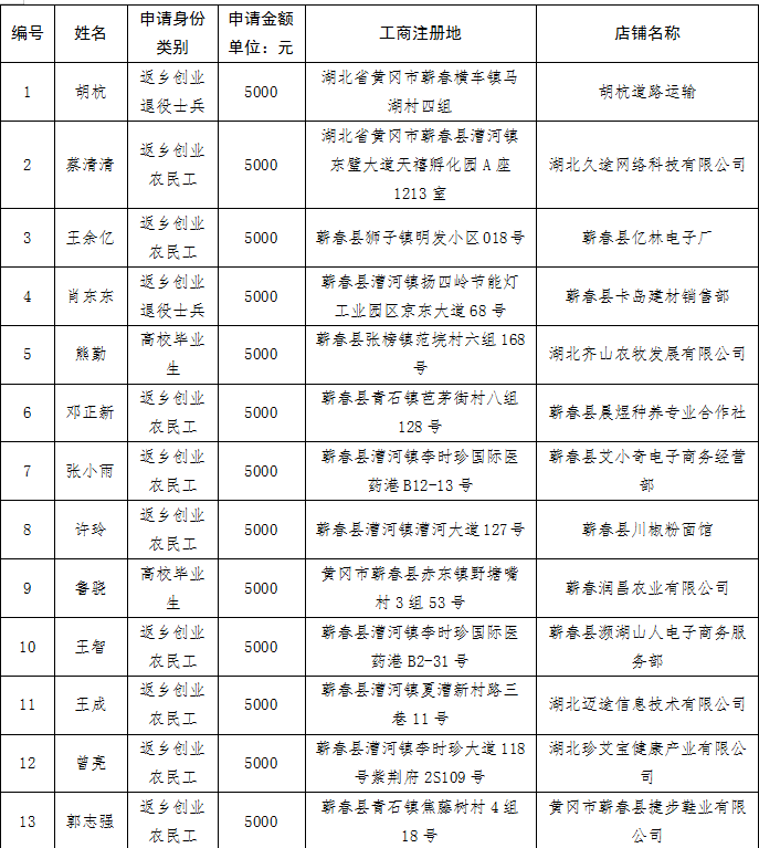 附件:蕲春县2024年一次性创业补贴拨付名单(第一批)