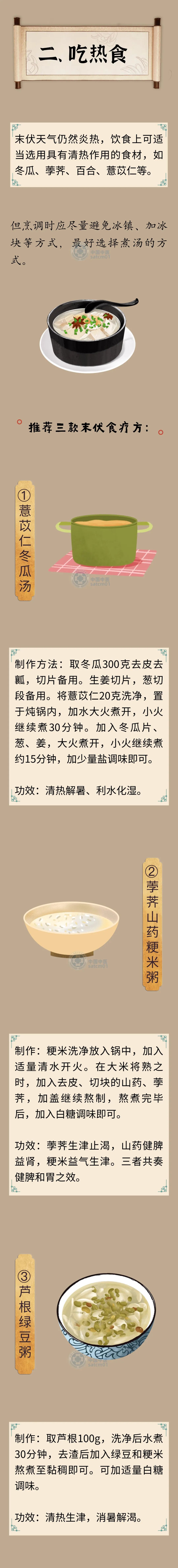 今年夏季雨水较为丰沛,湿气很重,如果养生不当,很容易导致湿邪久困于体内而滋生疾病。 三伏是最炎热的时候,人体的阳气也最为旺盛,可趁此机会祛除体内寒气。 教给大家末伏的“热养三件事”,帮助您清热利湿、健脾和胃。 来源:中国中医