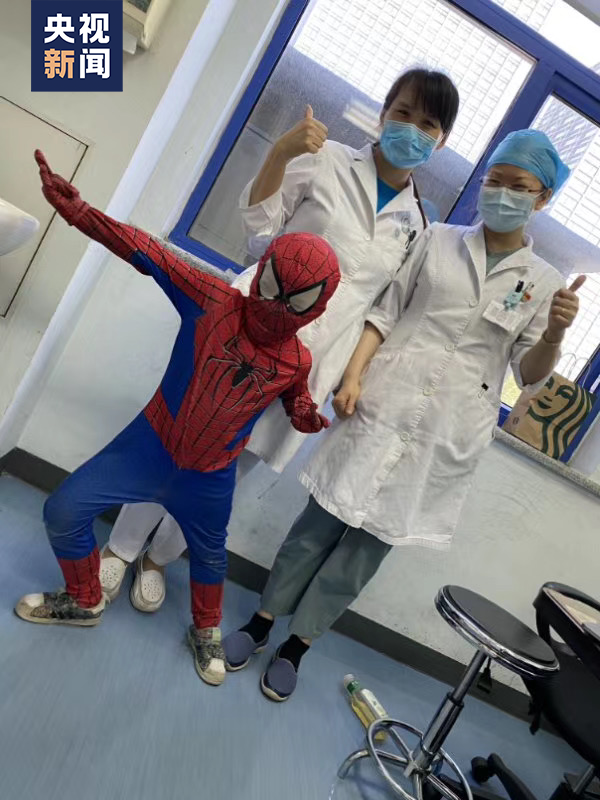 还有孩子穿上蜘蛛侠的衣服,开心地向吴妈妈展示自己↓