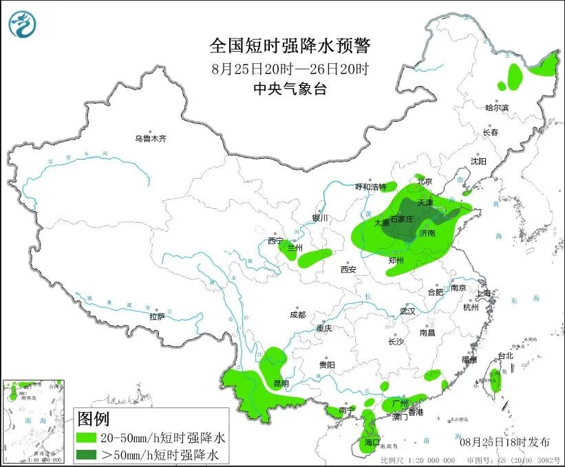 中央气象台25日18时继续发布强对流天气蓝色预警,预计25日20时至26日20时,华北、黄淮等地的部分地区将有8级以上雷暴大风或冰雹天气;西北地区中东部、华北、黄淮、西南地区南部、华南南部等地的部分地区将有小时雨量大于20毫米的短时强降水天气。
