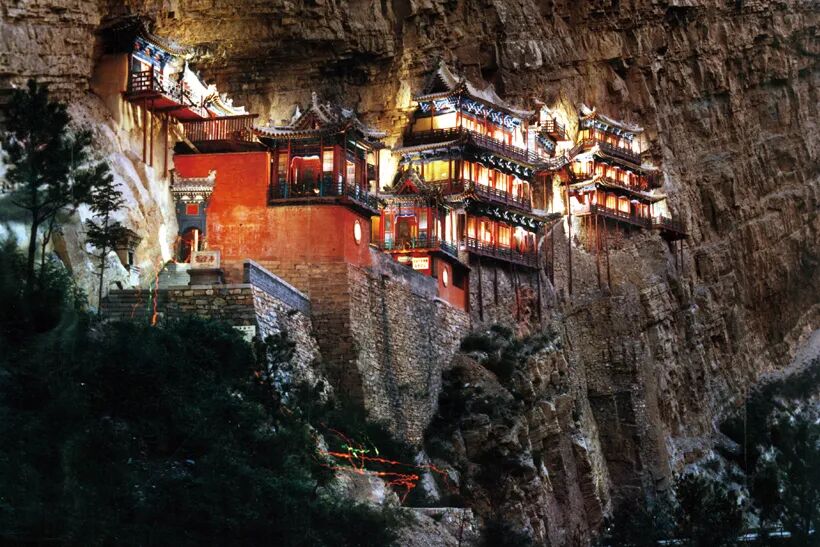 北魏建筑悬空寺凿山而建。