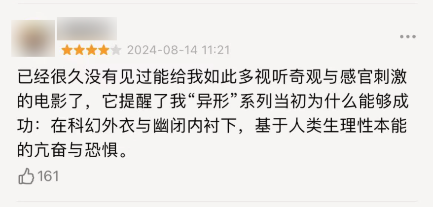 作为诞生45年之久的经典科幻IP,《异形》在全球拥有众多爱好者,已拍过多部续集,而《异形:夺命舰》是该系列在中国市场表现最好的一部,不少观众也给出好评:“今年最佳惊悚片来了”“‘屏住呼吸’直到最后一秒”。