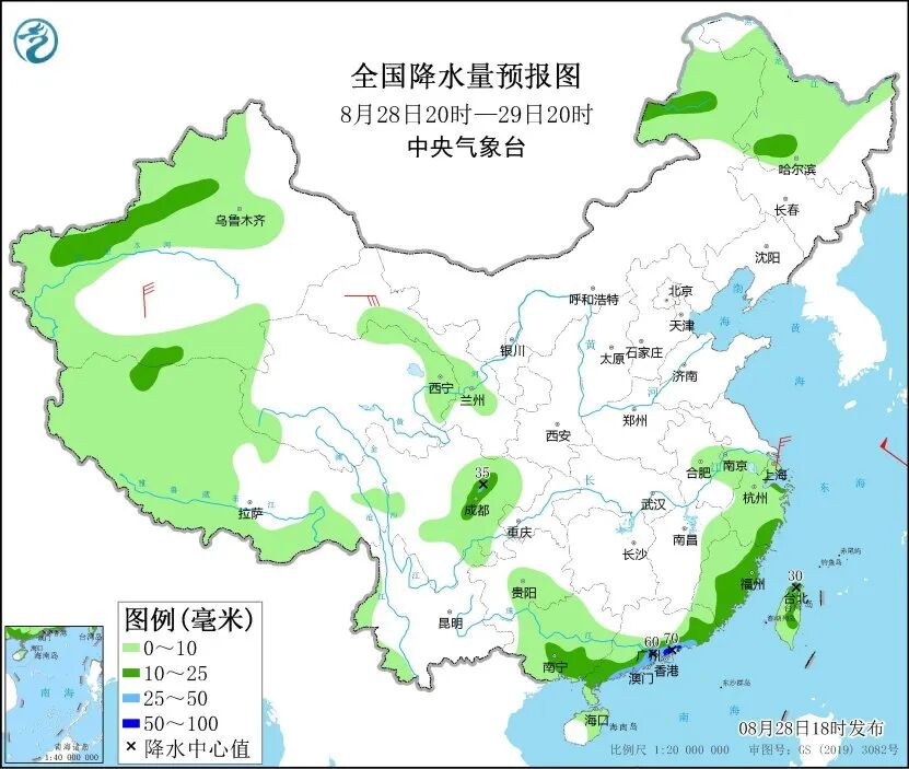 中央气象台预计,28日20时至29日20时,内蒙古东北部、黑龙江西部、新疆伊犁河谷、江南东部、四川盆地西北部、华南南部、台湾岛等地部分地区有中到大雨,其中,广东中东部沿海等地部分地区有暴雨。