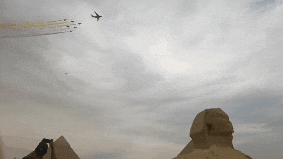 28日,受邀参加首届埃及航展的中国空军1架运-20与6架歼-10表演机飞越埃及金字塔,实现历史性“同框”。