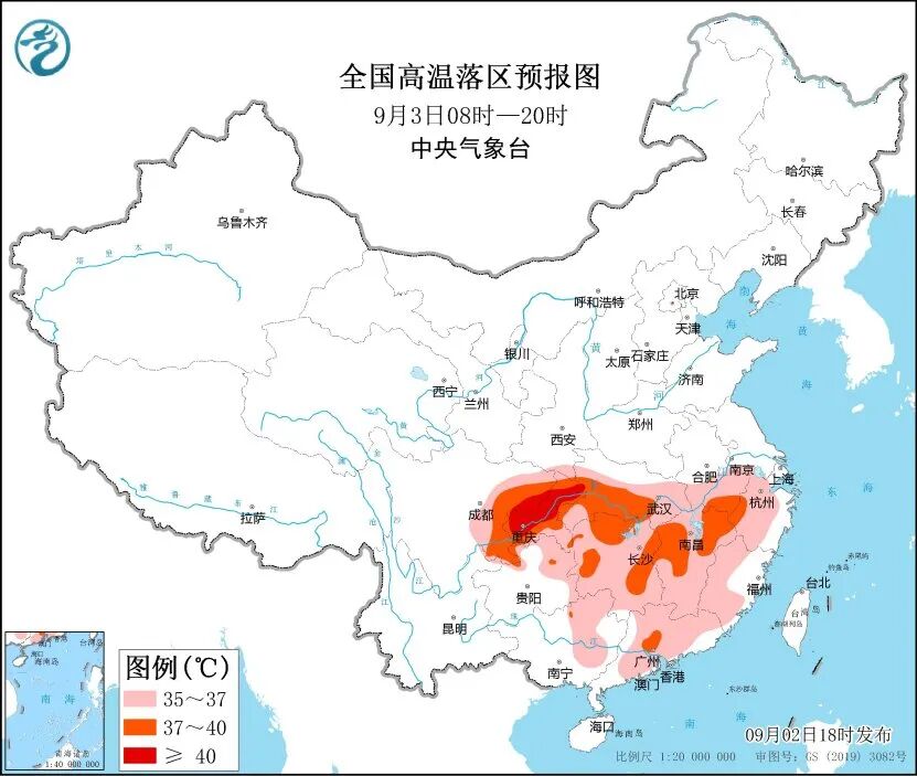 中央气象台2日18时继续发布高温黄色预警:预计3日白天,安徽南部、湖北南部、湖南中北部、江西中北部、四川盆地东部、重庆大部、广东中部等地部分地区最高气温37~39℃,四川盆地东北部、重庆中南部和东北部局地可达40℃以上。