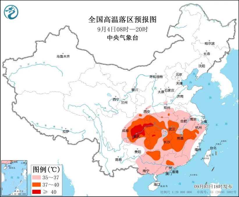 中央气象台3日18时继续发布高温黄色预警:预计4日白天,陕西南部、湖北大部、湖南西北部和东部、江西中北部、浙江西南部、四川东部、重庆、贵州东部、广西东北部、广东中部等地部分地区最高气温37~39℃,四川东部、重庆等地局地可达40℃以上。