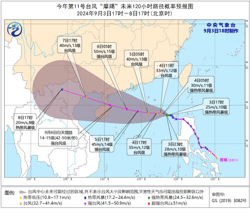 中央气象台3日18时发布台风黄色预警:今年第11号台风“摩羯”已于3日17时由热带风暴级加强为强热带风暴级,预计“摩羯”将于6日白天在海南岛东部到广东西部一带沿海登陆。3日20时,国家防总针对广东、海南两省启动防汛防台风四级应急响应。