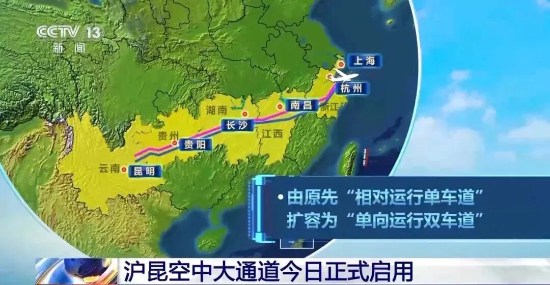 5日,连接我国长三角世界级机场群与昆明国际枢纽的沪昆空中大通道正式启用,将原先的相对运行“单车道”扩容为单向运行的“双车道”,能有效提升航班运行安全水平及飞行效率。