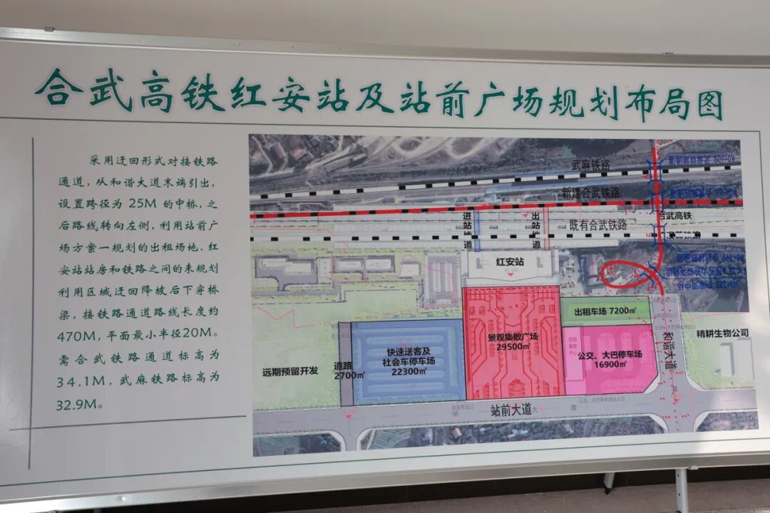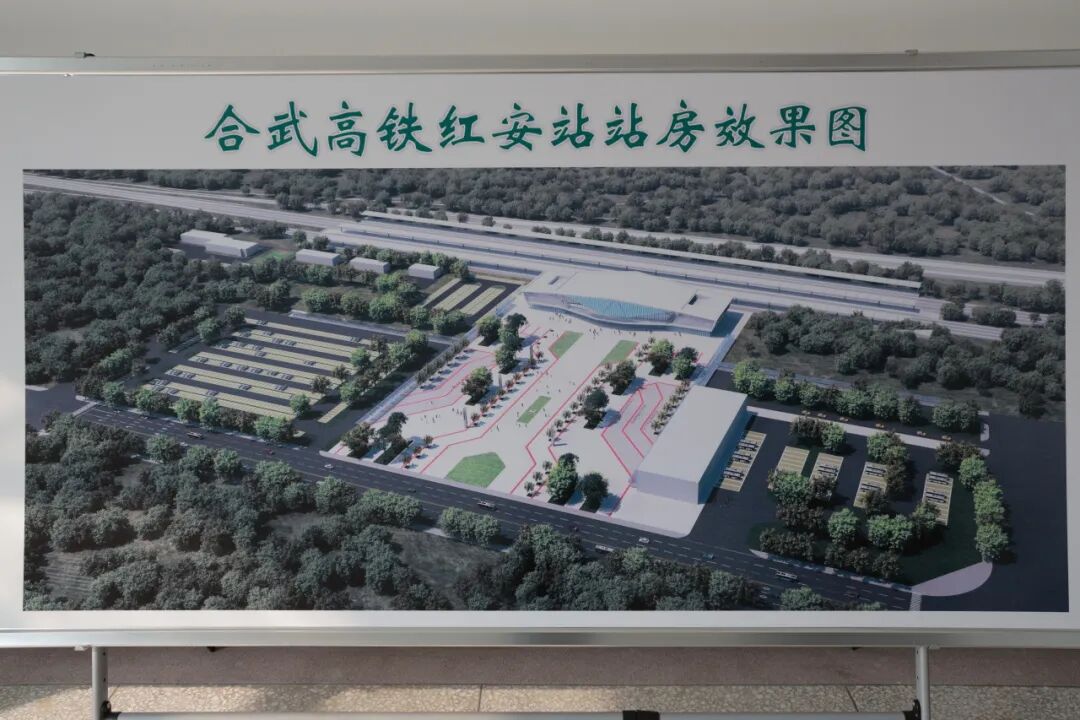 沿江高铁过境红安县八里镇、太平桥镇、觅儿寺镇3个乡镇,境内线路全长14.4km,设车站1座(与既有红安西站并站),站房面积暂按7200平方米。县内线路总投资约27.0亿元(含征用土地920.62亩,综合开发用地452.7亩,拆迁房屋11657.88平方米,拆迁其他建设物22781.13平方米,征地拆迁总费用4.5亿元)。