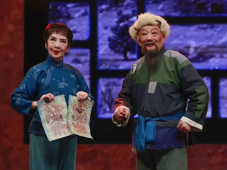 章晓申与妻子吴海燕一起演唱京剧《白毛女》中《扎红头绳》