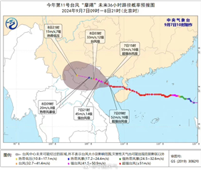 中央气象台9月7日10时继续发布台风红色预警。未来几天,“摩羯”的风雨影响将继续向西扩散,广西、云南等地将有猛烈降雨,广西南部日降雨量将超过450毫米。