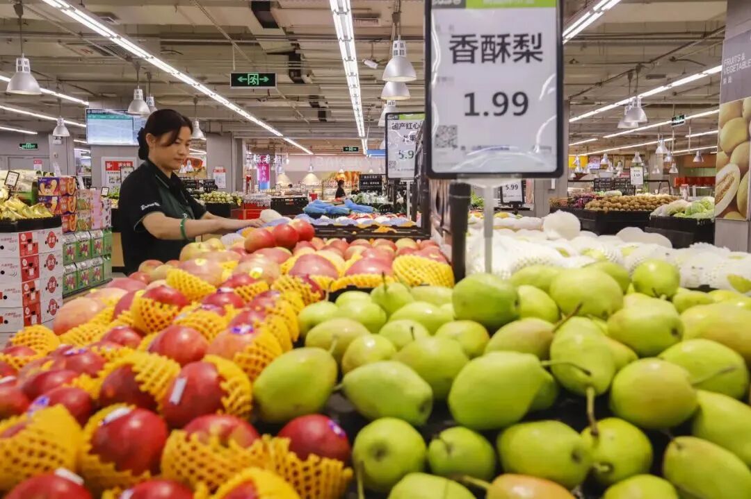 ▲9月9日,工作人员在河北省遵化市一家超市整理水果。刘满仓摄(新华社发)