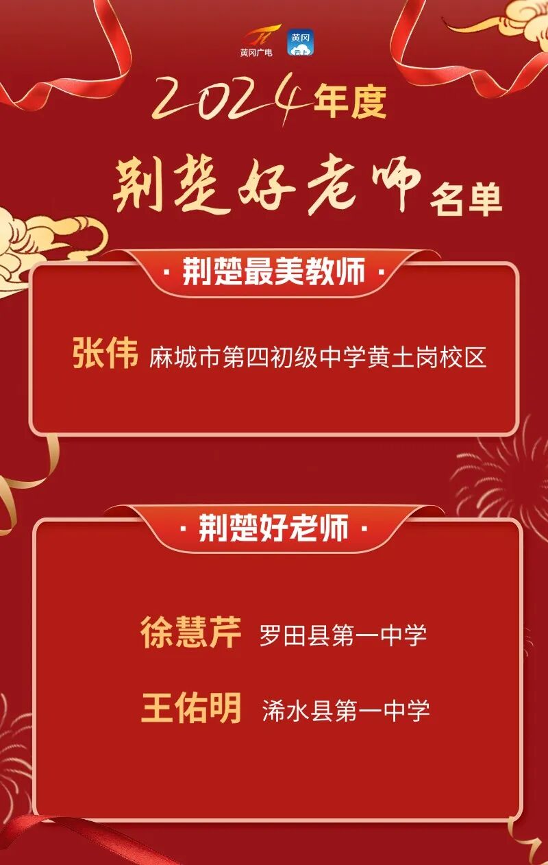 由省委教育工委、省教育厅联合省委宣传部、省总工会共同举办的2024年“荆楚最美教师”“荆楚好老师”宣传选树活动名单公布,我市3名教师入选。