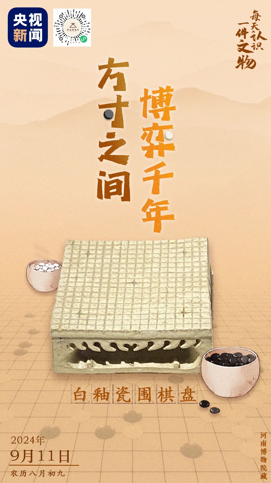 央视新闻联合全国博物馆推出文博科普产品《文博日历》,每天带你认识一件文物。白釉瓷围棋盘⻓宽仅10厘⽶、⾼4厘⽶,棋盘上刻纵、横直线各17道,加上两边边线,构成各19道、共361个交叉点,是迄今所知世界上最古⽼的⼗九道围棋盘。不仅如此,棋盘通体施白釉,下部露胎,釉色白中泛青,具有早期白瓷特点,为研究隋代陶瓷工艺提供了珍贵的实物资料。