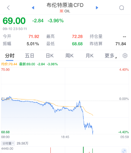 9月10日,美股能源股也大幅下挫,标普500能源指数一度跌超2.3%,创下自2月份以来的最低点。个股方面,埃克森美孚跌超2%,雪佛龙、西方石油跌超1%。