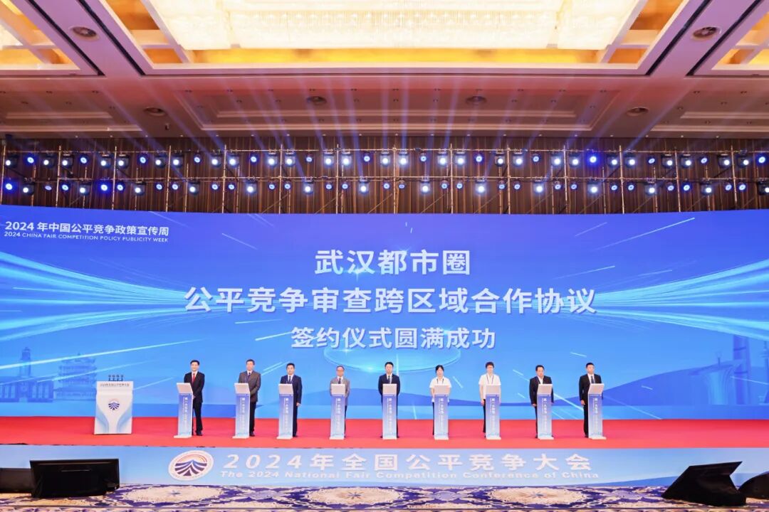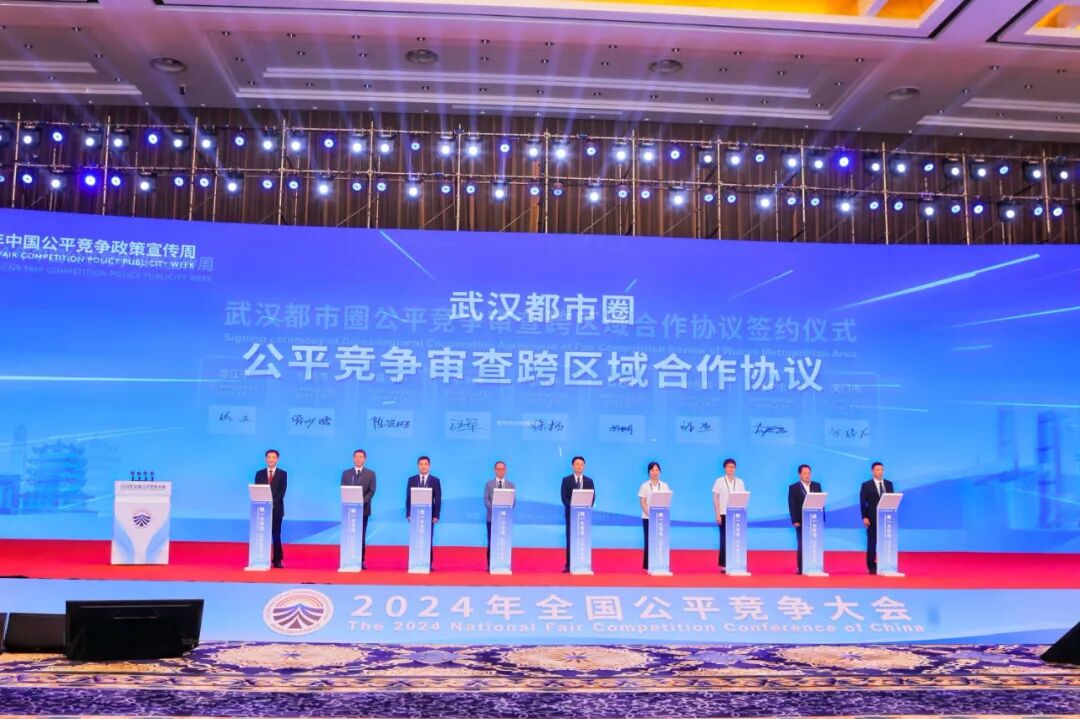 在2024年全国公平竞争大会上,武汉市、黄石市、鄂州市、孝感市、黄冈市、咸宁市、天门市、仙桃市、潜江市等9个来自武汉都市圈的城市代表现场签约,共同建立公平竞争审查一体化合作机制。