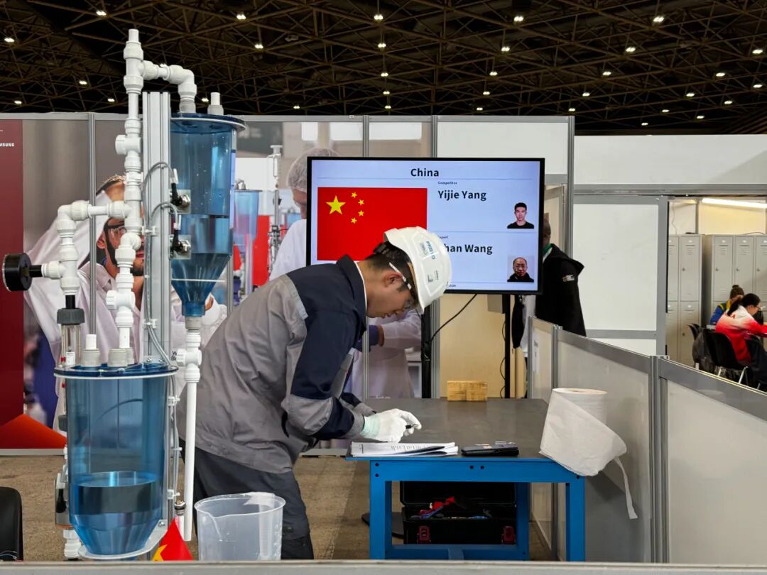 9月12日,在法国里昂,一名选手参加第47届世界技能大赛水处理技术项目比赛。新华社记者 罗毓 摄本届大赛于9月10日至15日在里昂举行,来自近70个国家和地区的约1400名选手参加。比赛项目包括运输与物流、结构与建筑技术、制造与工程技术、信息与通信技术、创意艺术与时尚、社会与个人服务6大类共59个比赛项目。中国派出68名选手参加了全部比赛项目。