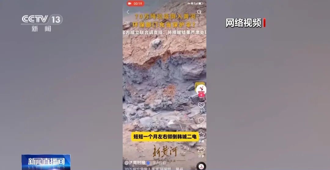 据央视9月18日消息,2024年8月28日,“陕西韩城市一男子在抖音平台实名举报当地‘70万吨垃圾倒入黄河’、企业违规倾倒填埋垃圾、环保部门充当企业保护伞”随后该话题在网络上引发热议,几天之内舆情不断发酵,截至9月3日,已扩散4000多条,事关重大,记者立刻赴陕西韩城市进行调查。