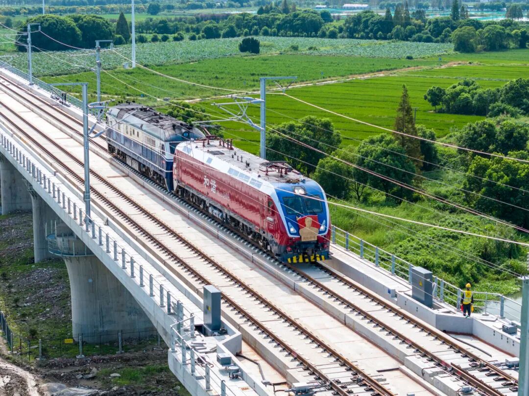 随着首趟检测列车从上海虹桥站开出,对线路进行轨道、接触网和电务设备检测,沪苏湖高铁正式进入联调联试阶段,线路全长约163公里,设计时速350公里。