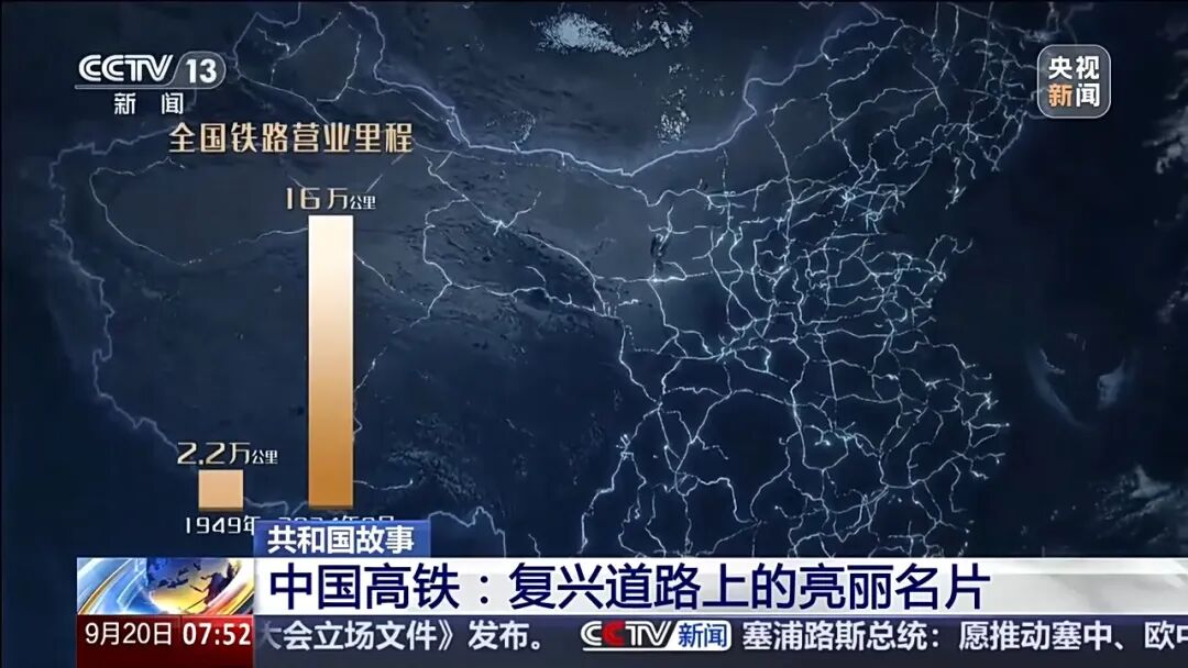 不仅是成渝铁路,75年来,中国铁路从线路支离破碎跃升至高速铁路网世界领先,不仅改变了人们的出行方式,更成为国家现代化进程中的重要标志。1949年,全国铁路营业里程仅为2.2万公里。75年间,这一数据跃升到了16万公里。高速铁路营业里程更是从零起步超过4.6万公里,占全球高速铁路总里程的三分之二以上,稳居世界第一。