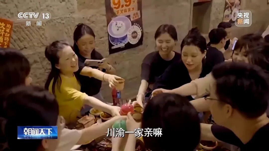 2015年12月26日,成渝高铁建成通车,攻克了一系列高铁建造的难题。2020年,成渝高铁再次提速,平均每20分钟一趟,成渝一小时生活圈成为现实。1952年,成渝铁路时速40公里,成都至重庆30小时到达;1987年,成渝铁路时速80公里,成都至重庆15小时到达;2020年,成渝高铁时速300公里,成都至重庆约1小时到达。成渝中线高铁正在建设,预计2027年,成都至重庆50分钟到达。现在,每天有18.6万人次通过成渝动车高铁流动,有商务出行的乘客,也有旅游打卡的“特种兵”,甚至还有打着“高铁”到重庆吃火锅的成都人,说走就走,当天往返。随着成渝经济圈的兴起,成渝高铁的开通让重庆和成都距离更近。“现在成都火锅和重庆火锅越来越接近了,我们都叫川渝火锅,川渝一家亲嘛。”重庆火锅店老板说。