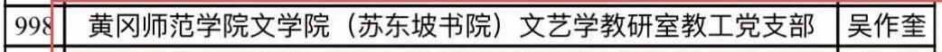 近日教育部公示了全国高校“双带头人”教师党支部书记“强国行”专项行动团队名单,黄冈师范学院文学院(苏东坡书院)文艺学教研室教工党支部入选。